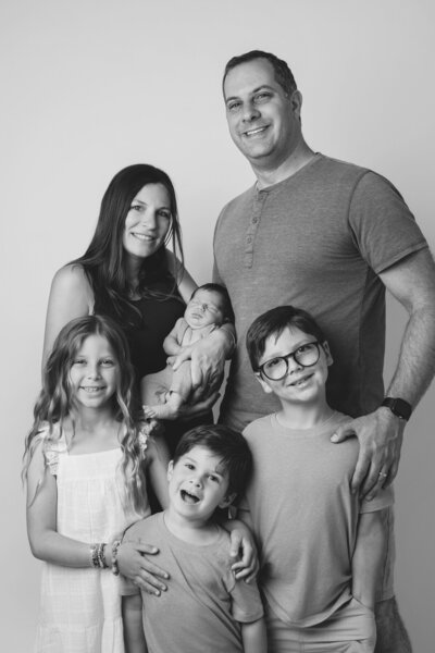 Welcoming a newborn into a family of six brings a flood of love, energy, and connection. This session highlights the way older siblings surround their baby brother with adoration, laughter, and warmth, while parents beam with pride at their expanding legacy. Each portrait tells a story of belonging, resilience, and the unique role this baby will play in the family’s history, creating heirlooms that embody both love and legacy.